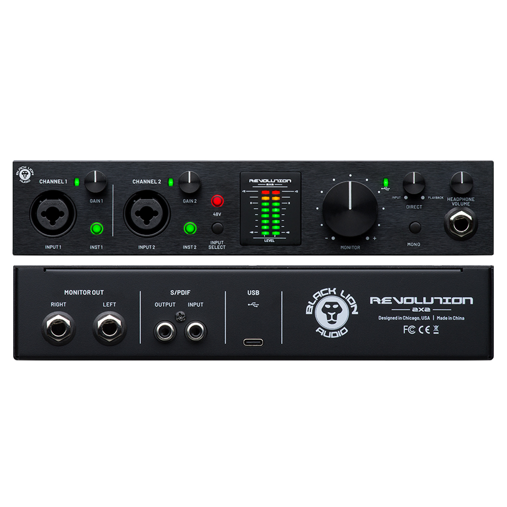 Revolution 2×2 دارای دو ورودی کمبو (XLR/TRS) است که هم برای میکروفن و هم برای ساز کاربرد دارند.