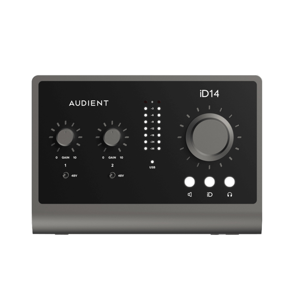 کارت صدای کمپانی Audient  مدل iD14 MK2 یک رابط صوتی 2 کاناله که مجهز به پری امپهای کلاس A میباشد.
