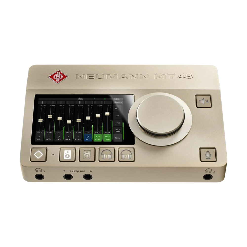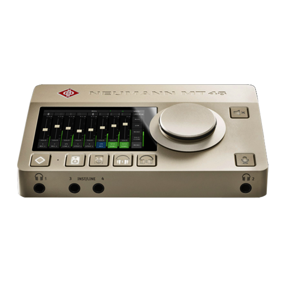 در پنل روئی کارت صدا NEUMANN MT 48 EU یک ولوم بزرگ برای کنترل آسان صدا در کنار یک نمایشگر تمام لمسی که از وضوح تصویر بالایی برخوردار است