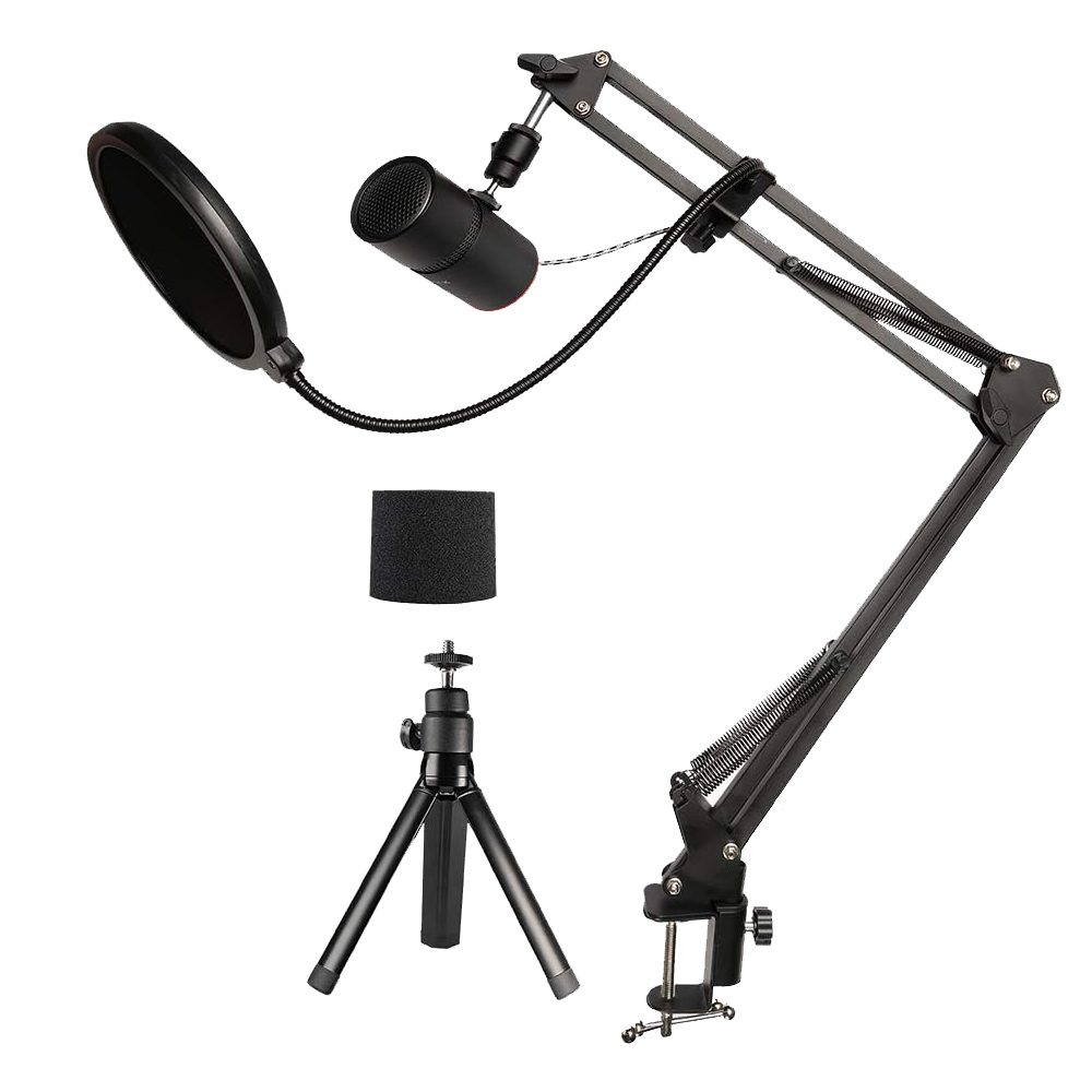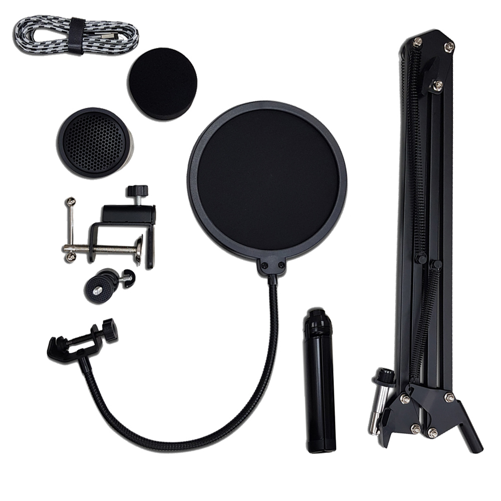 پایه بازوئی به همراه پایه رو میزی و پاپ فیلتر، که به راحتی میتوانید با تلفن های هوشمند یه لبتاب خود هر جا که بخواهید محتوای صوتی خود را تولید کنید.
