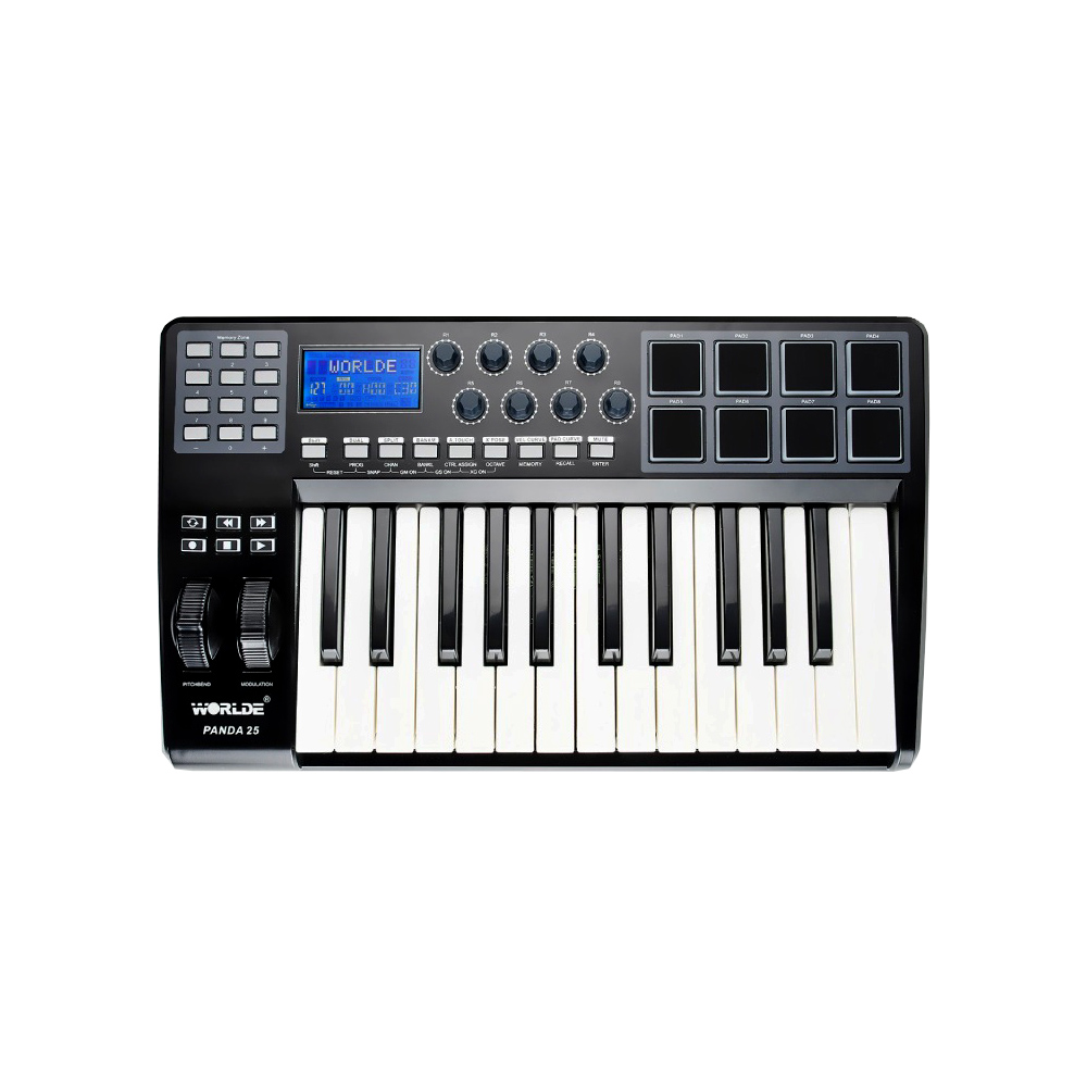کمپانی Worlde با تولید میدی کنترلر Panda 25هر آن چیزی را که برای تولید، و خلق یک اثر جاودانه نیاز دارید را برای شما در این کنترلر قرار داده است.این میدی کنترلر کوچک با اندازه بسیار مناسب و طراحی بسیار جمع جوری که دارد،میتواند یک همراه همیشگی در کوله پشتی شما برای بوجود آوردن ، اثر هنری شما باشد.